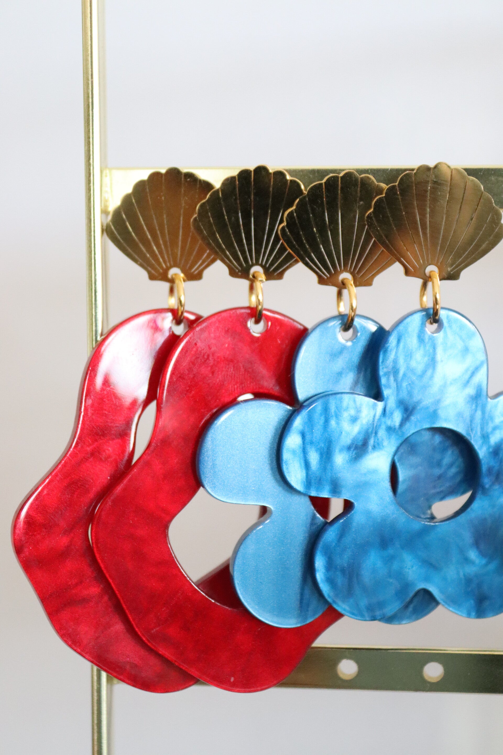 Deze collectie oorbellen is door mijzelf ontworpen, de bloemen zijn gemaakt van kunsthars en de oorbellen zijn van stainless steel je kan de bloemen ook eraf halen en de oorbellen alleen dragen.