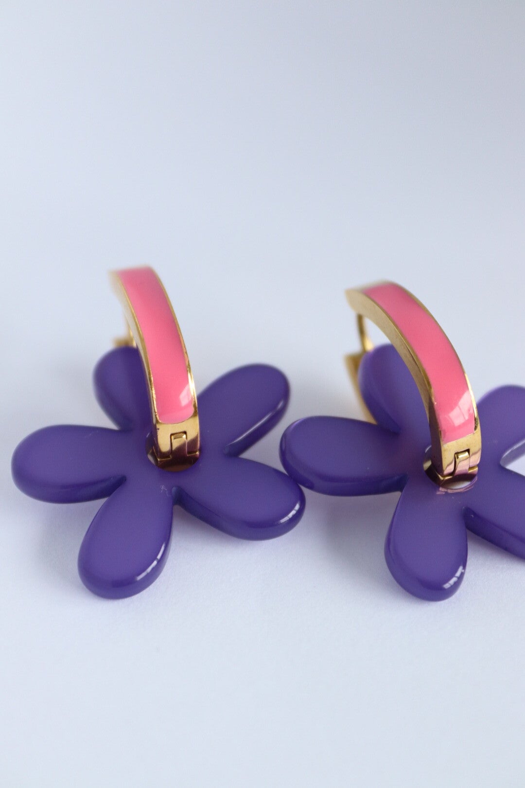 Deze collectie oorbellen is door mijzelf ontworpen, de bloemen zijn gemaakt van kunsthars en de oorbellen zijn van stainless steel je kan de bloemen er ook af halen en de oorbellen alleen dragen