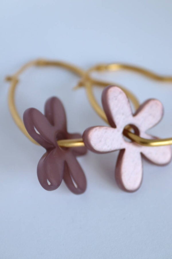 Deze collectie oorbellen is door mijzelf ontworpen, de bloemen zijn gemaakt van kunsthars en de oorbellen zijn van stainless steel je kan de bloemen er ook af halen en de oorbellen alleen dragen