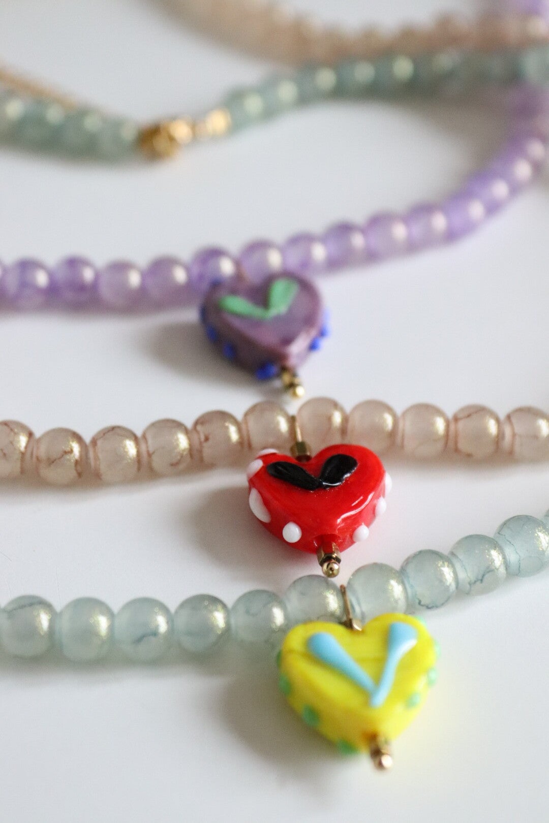 Mooie kettingbak glaskralen met glitters erdoorheen