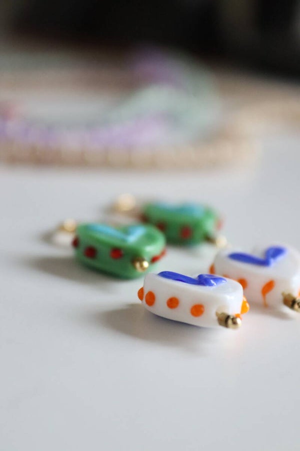 Mooie oorbellen van glasbedels en mooie goude details.