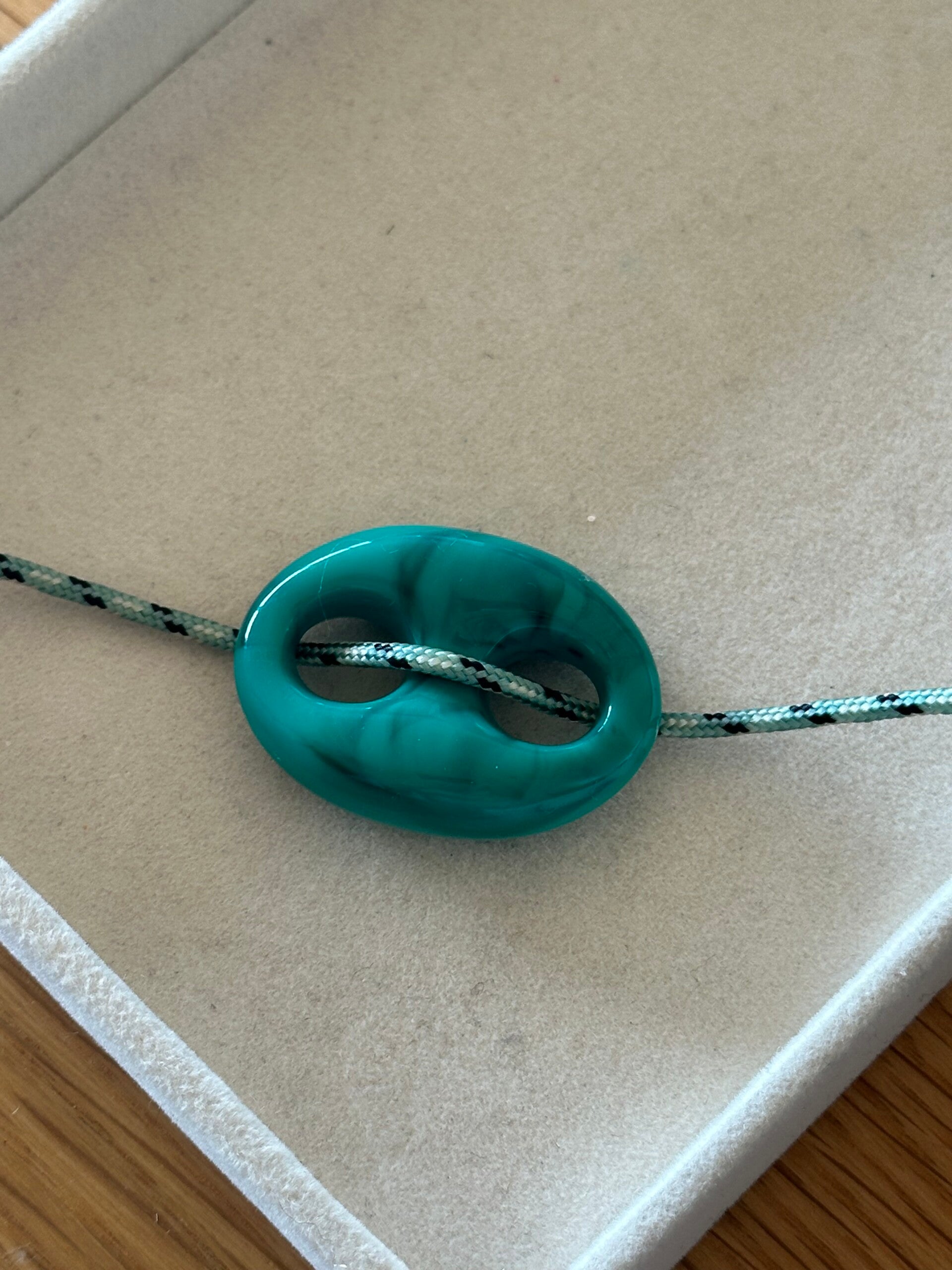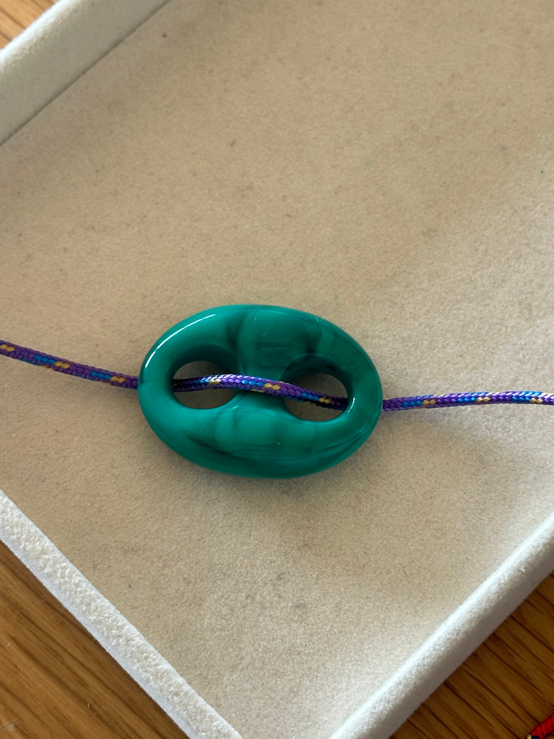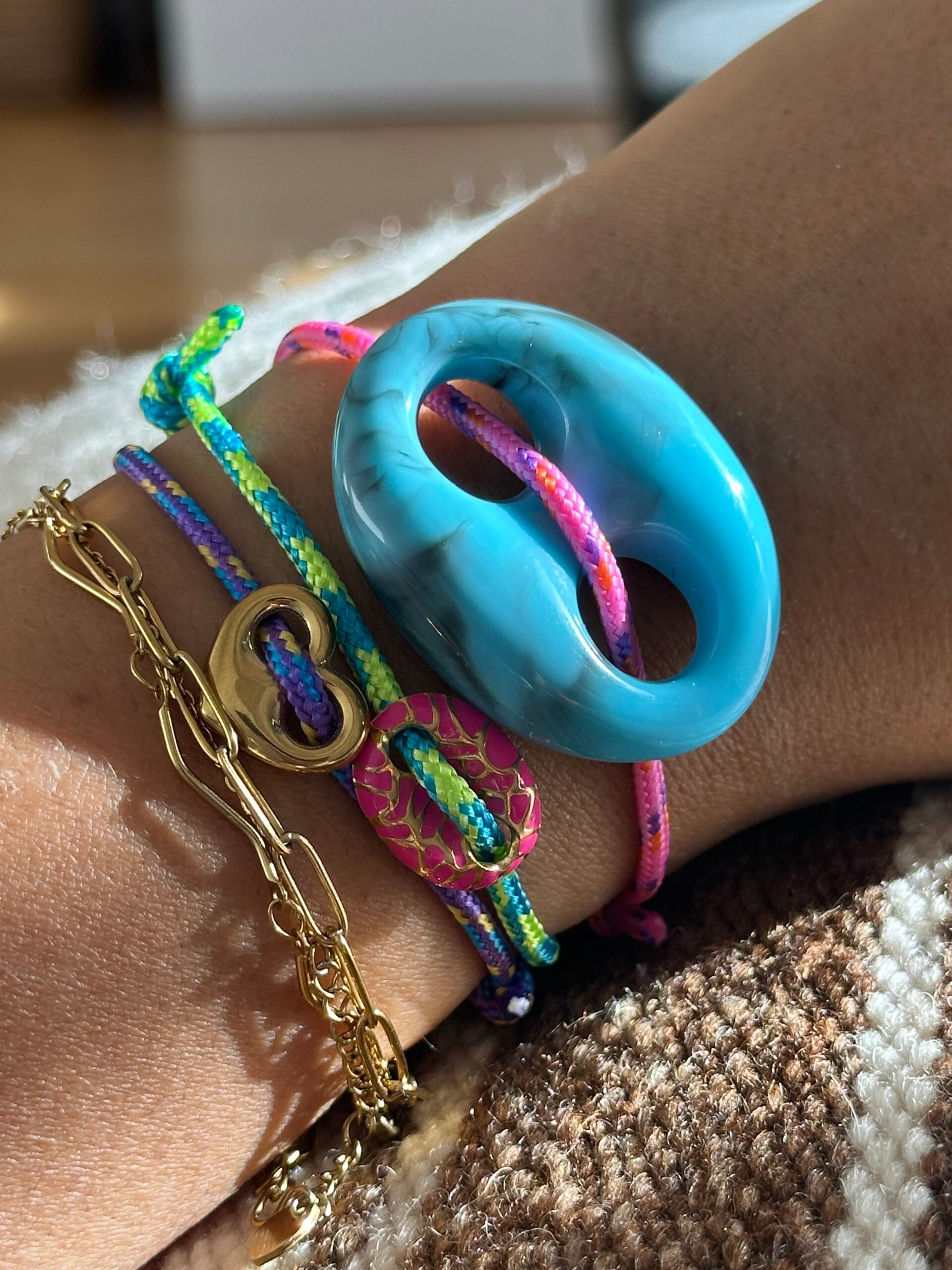 Mooie speelse armband, met een schuifknoop sluiting met leuke kraaltjes aan de achterkant