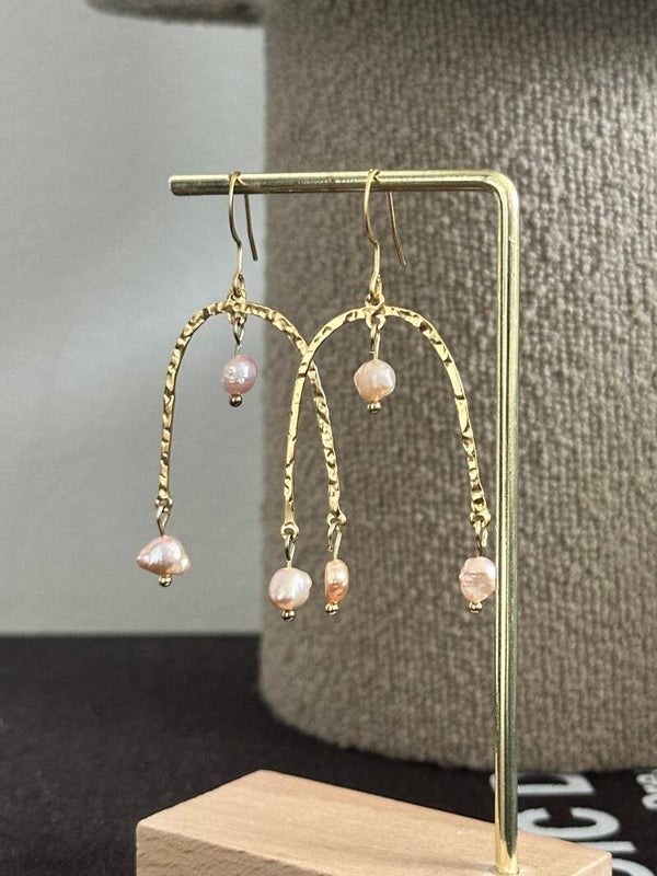 Mooi stainless steel oorbellen met zoet waterparels in roze kleur